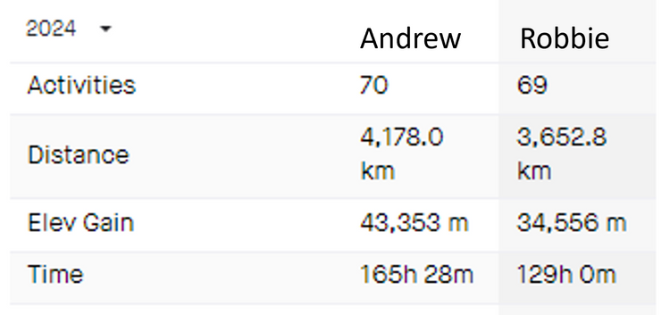 Andrew led the way this month, reclaiming the 2024 Distance Lead (as predicted. Come on Robbie put up a fight), but it hasn't been without incident. Both Andrew and Robbie had separate incidents with cars this month. Both had cars pull out in front of them which caused a collision. Luckily neither rider sustained any serious injuries, and both are back on their bikes. It is a good reminder to be safe on the roads, make yourself visible and position yourself to maximise your visibility.