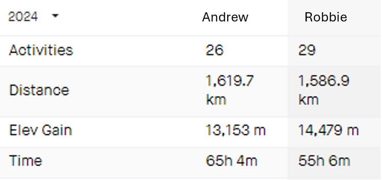 Back in VIC, Robbie got a bug and was off the bike for a week. After all his heroics last month, reality came crushing down. But he has persisted and is starting to hit some form again. Andrew and Robbie seem to be pretty close in km covered. I wonder if Robbie can keep up?