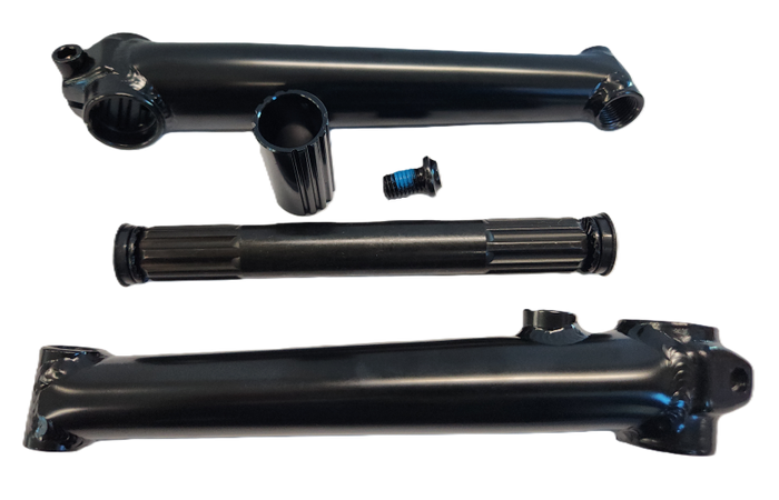- 3 Piece BMX Crankset - 175mm, 19 x 8T - Solid Spindle With Bolt. Without B.B. Set. Gloss black