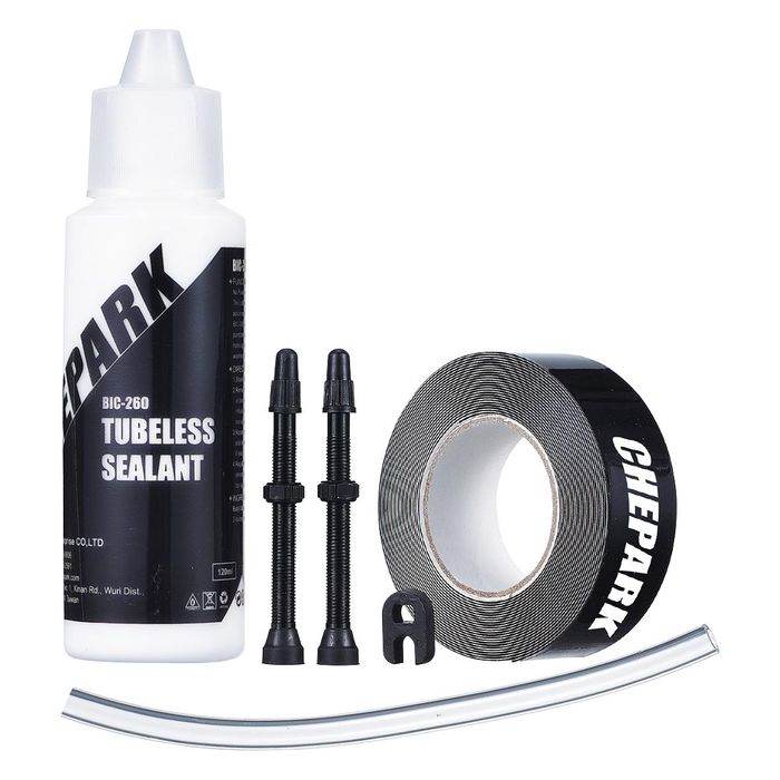 - CHEPARK Tubeless sealant set, 250ml Sealant, 1 x 25mm width tape, 2 x 40mm valves, Valve Core Removal Too