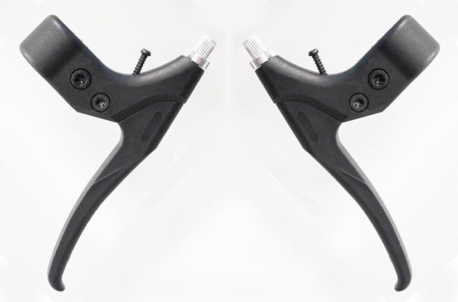 BRAKE LEVERS - Pair, For Caliper Brake, 2 Finger Type, Alloy, Black bracket and Silver lever. (Sold In Pairs) -