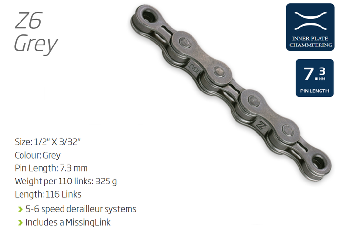 - CHAIN - 5-6 Speed - KMC Z6 - 116L - GREY - w/Connect Link