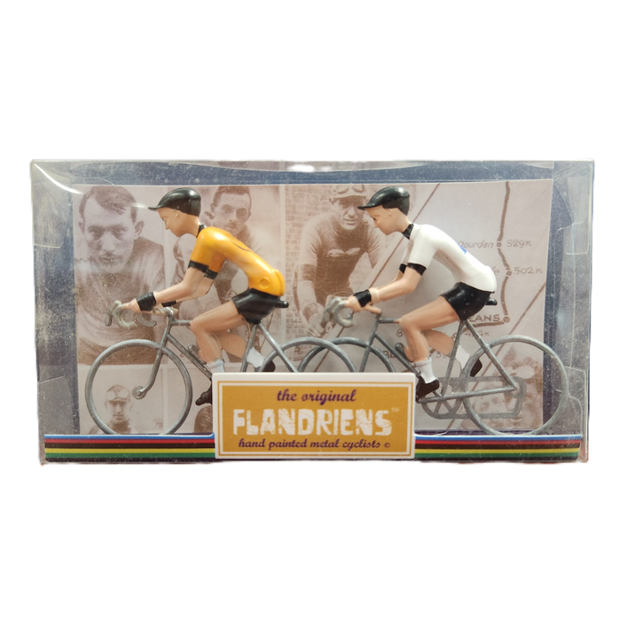 - A FLANDRIENS Models, 2 x Hand painted Metal Cyclists, Yellow & White jerseys
