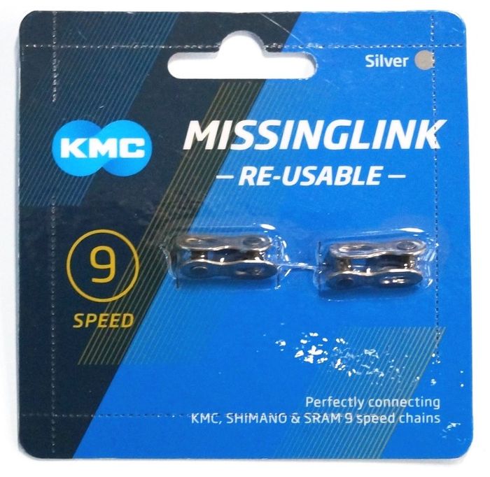 - Connecting Link, KMC Card of 2 for 1/2" x 11/128" 9 SPEED chain, Silver.
