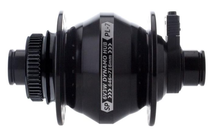 - DYNAMO HUB Shutter Precision, Model PL-7, 12mm Thru Axle, 100mm OLD, 28H, CENTERLOCK Disc, Black