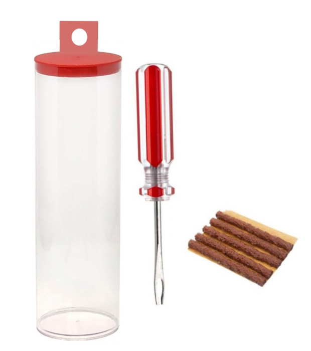 - Tubeless tyre Repair Kit, Tool + 3.5mm x 5cm x 5pcs Repair fibres, in CLEAR TUBE