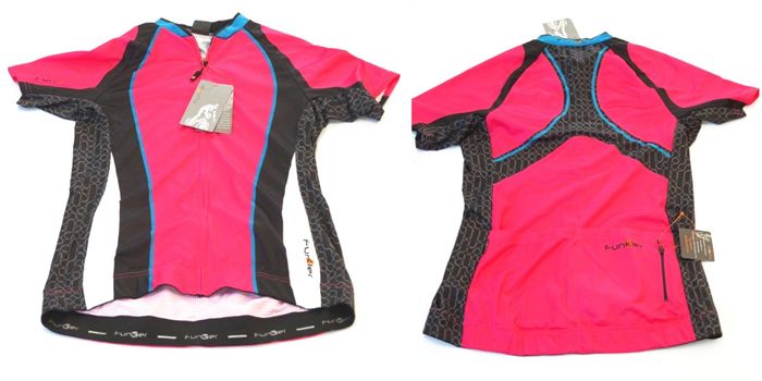 - PINK JERSEY with Blue Trim, Funkier Rieti, Short Sleeve, Full Zip, Womens XL