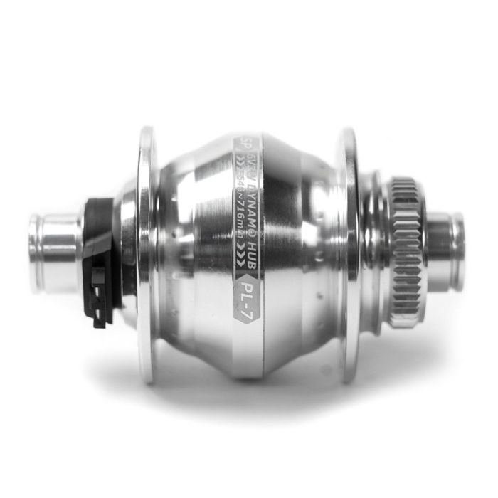 - DYNAMO HUB Shutter Precision, Model PL-7, 12mm Thru Axle, 100mm OLD, 32H, CENTERLOCK Disc, Silver