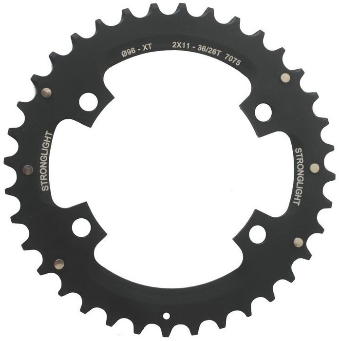 - CHAINRING - MTB "STRONGLIGHT" 36T - SHIMANO - 2X11, 7075-T6 BLACK, 2x11 speed, 96 BCD, Outer not threaded, 36T, 4 arms, Quality Stronglight product 272301