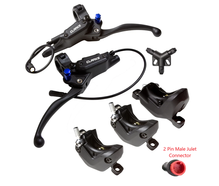 - CLARKS Cargo Hydraulic Disc Brake Set shut off, 2 piston, 2X1 Configuration 3x180mm 2.3 rotors compatible for non-ebike