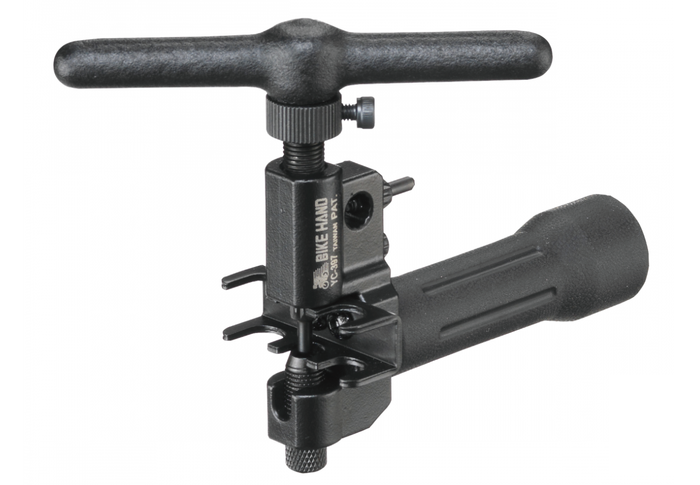 - Tool - Chain rivet extractor, for chain 7-12 speed chains, w/chain hook & extra pin, black, w/BIKEHAND logo