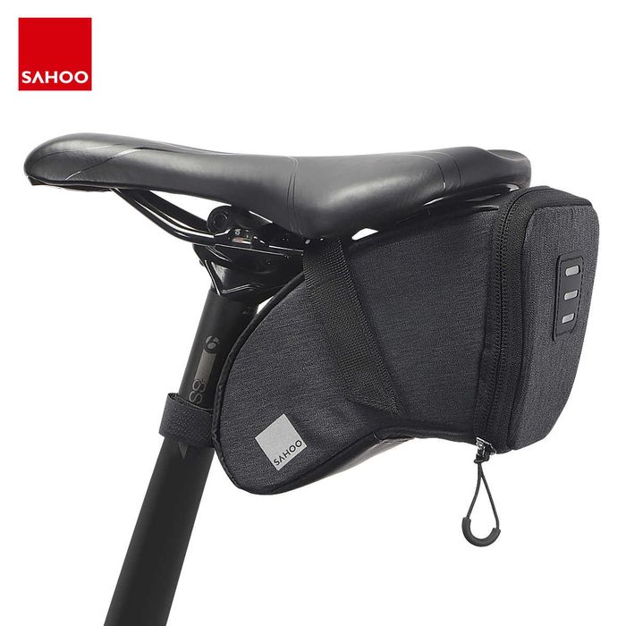 - SAHOO Saddle bag, 1.5L,. 2 x velcro strap, 600D, 20x10x9cm, Black/Grey