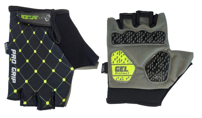 - BLACK with YELLOW dots GLOVES - PRO SERIES, Amara Palm, Lycra Towel GEL Padding, M