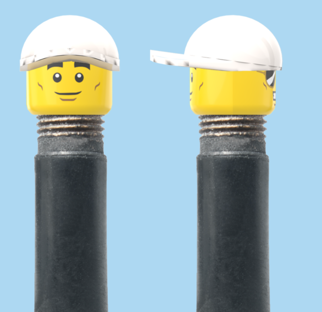 `A NEW ITEM - VALVE CAP, A/V, brown beard, gold fire fighter helmet, sold in pairs -