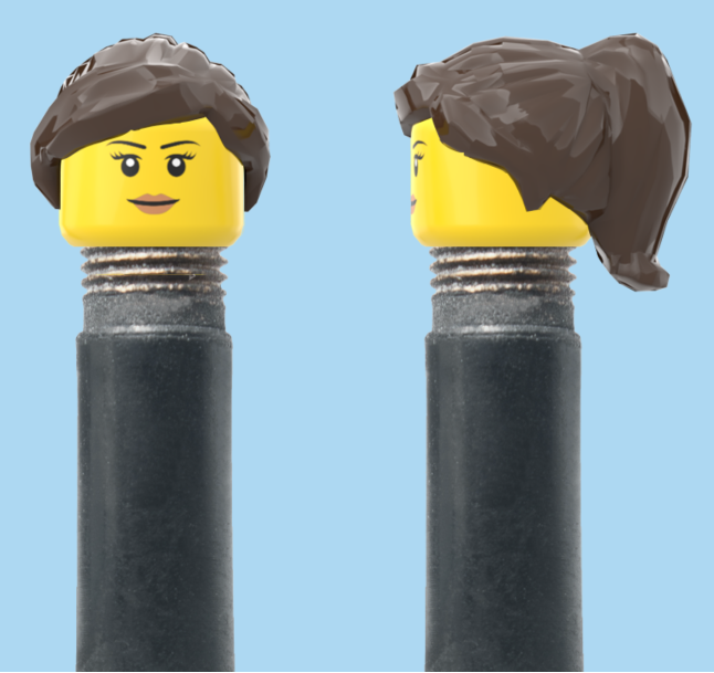 - `A NEW ITEM - VALVE CAP, A/V, smile, eyelashes, lipstick, long dark brown pony tail hair, sold in pairs