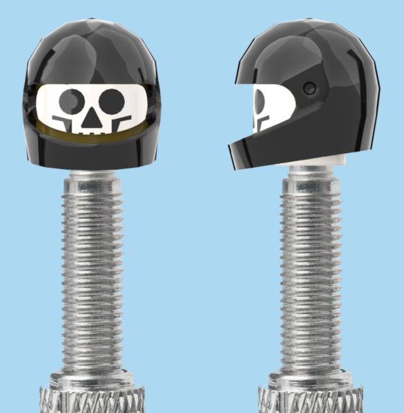 - `A NEW ITEM - VALVE CAP, F/V, skull, black full face helmet, sold in pairs