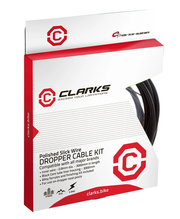 - DROPPER CABLE KIT - Dropper cable kit replacement set, Polished die drawn 0.8mm wire, outer casing 4.3mm O.D. 3000mm and ferrules, complete kit. Quality Clarks product