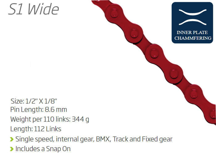 CHAIN - Single Speed - KMC S1 - 112L - RED - w/Connect Link
