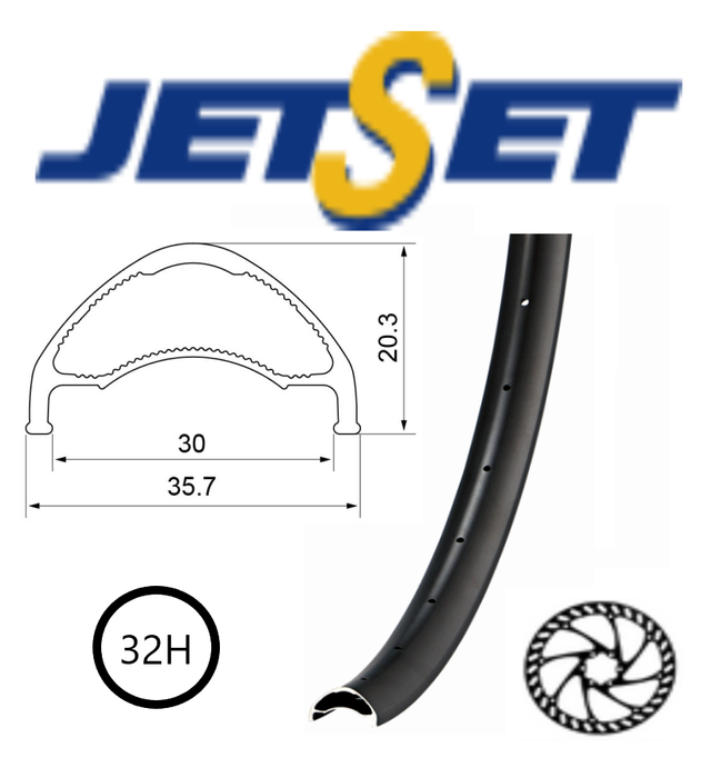 - A NEW ITEM - RIM 29er x 30mm - JETSET AM-30DH+ 32H - (622 x 30) - Presta Valve - Disc Brake - D/W - Tubeless Ready - BLACK - Welded Join - ARCOS system - Quality Jetset rim made in Taiwan
