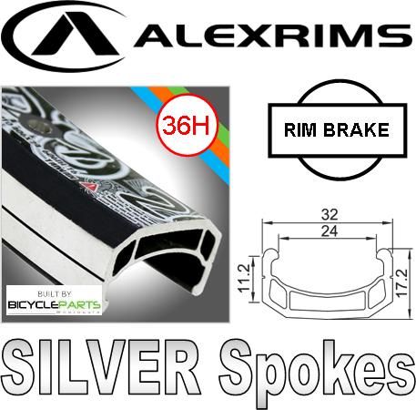 - WHEEL - 26" Alex DM-24 36H Black Rim, FRONT 3/8" Nutted (100mm OLD) Loose Ball Joytech Silver Hub, Mach 1 SILVER Spokes