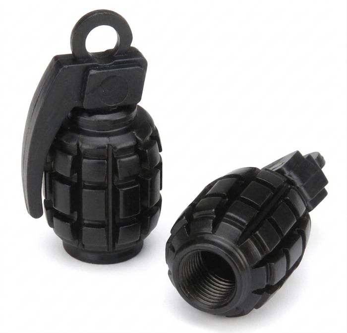 - `A NEW ITEM - Valve Cap, alloy anodised Black, Grenade, A/V (Sold Individually)