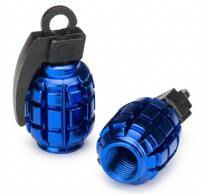 - `A NEW ITEM - Valve Cap, alloy anodised Blue, Grenade, A/V (Sold Individually)
