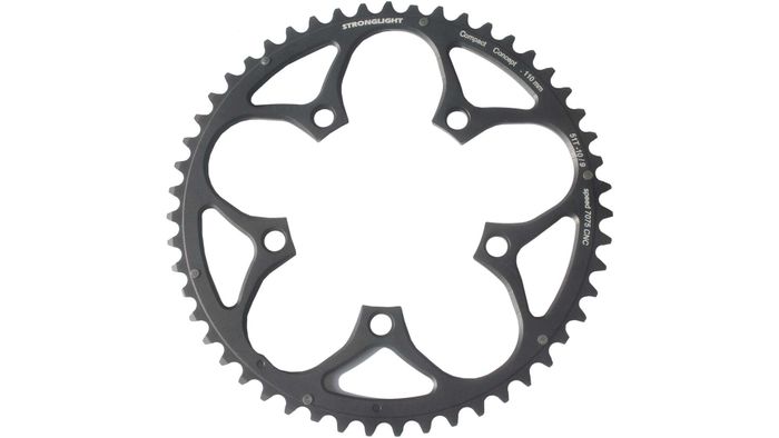 - ROAD CHAINRING, STANDARD, TYPE S - 7075 CNC, BLACK, 9/10, 110 BCD, Outer, 52T, 5 arms "STRONGLIGHT"