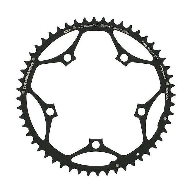 CHAINRING - ROAD "STRONGLIGHT", 53T, 7075 CNC Black CT2 - 130mm BCD, 5 Hole for 10/11 Spd -